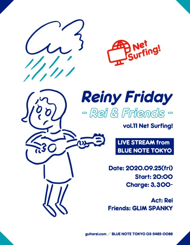 2015年から、Rei がリスペクトするミュージシャンを招き、気まぐれに開催してきた Reiny Friday。「雨が降る夜。せっかくの金曜日なのに外に遊びに行けない。そんな時は友達を呼んでJAMするよ! 君も遊びにおいでよ。」というコンセプトでスタート。これまで、山崎まさよし、土岐麻子、NakamuraEmi、iri らとのセッションを敢行。