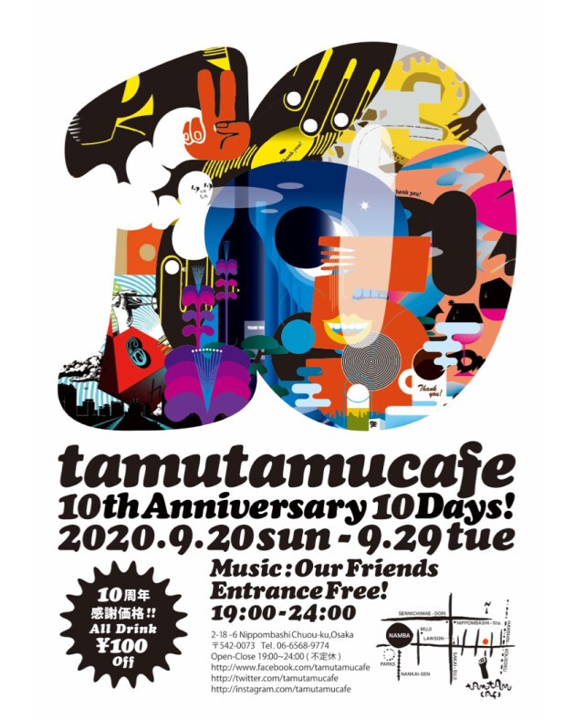 2020.9.20.sun - 29.tue 『tamutamucafe 10th Anniversary 10Days!』 @tamutamucafe open-19:00 close-24:00 Entrance Free!