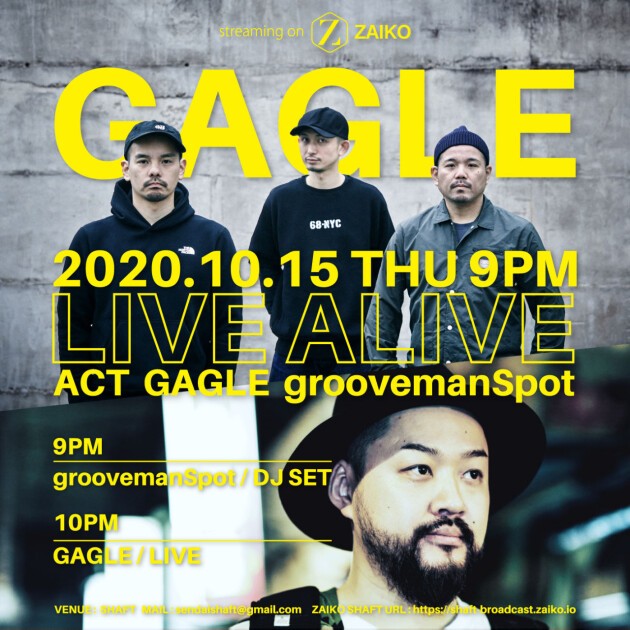 仙台SHAFTが運営するDJ、LIVE配信"SHAFT MUSIC BROADCAST"。今月10月15日、東北を代表するヒップホップユニットGAGLE(DJMitsu the Beats、HUNGER、DJ Mu-R)のLIVEが決定!同じく東北を代表し国内外で活躍中のgroovemanSpotもDJ SETで登場。オンラインストリーミングという形式だからこそ出来る現場と各地の皆さんを繋ぐ約2時間、カメラ5台による動きのあるカメラワークと高品質なライブ映像、現場の空気感を伝えられるダイレクトなクラブサウンドでお届けします!なお、今回は会場である仙台SHAFTへの継続支援として、必要経費を差し引いた収益の全額を寄付する形での開催になります。皆様のご参加、ご視聴お待ちしております。