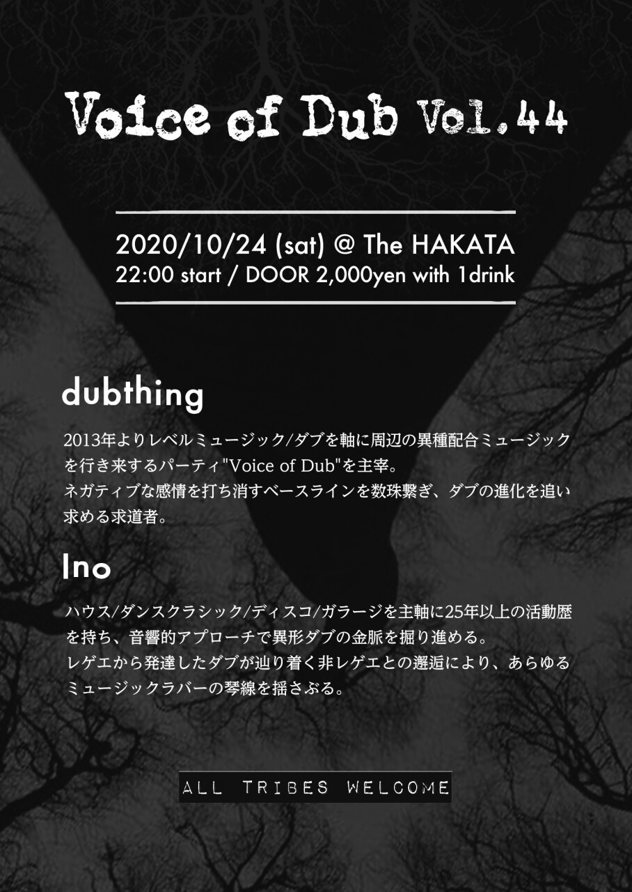 2013年よりレベルミュージック/ダブを軸に周辺の異種配合ミュージックを行き来するパーティ"Voice of Dub"を主宰。ネガティブな感情を打ち消すベースラインを数珠繋ぎ、ダブの進化を追い求める求道者。