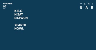 11月7日のVENT BARにはK.E.G、HIZAT、Datwun、YEARTH、HOWLが登場!