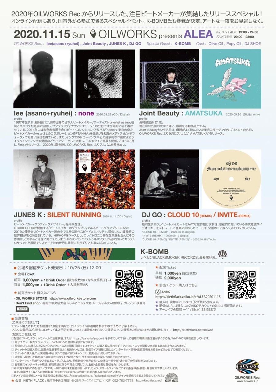 2020年OILWORKS Rec.からリリースした、注目ビートメーカーが集結したリリーススペシャル!オンライン配信もあり、国内外から参加できるスペシャルイベント。