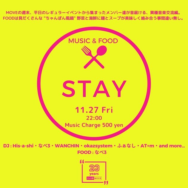 DJ : His-a-shi / なべ3 / WANCHIN / okazsystem / ふぁなし / AT+m / and more…