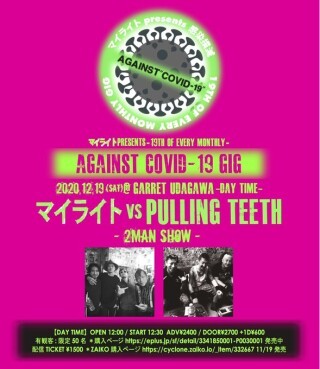 このコロナ渦に先陣を切るべくマイライトが毎月19 日”対COVID-19にちなんで"5ヶ月連続で世に仕掛けるマンスリー企画第2弾!マイライト × PULLING TEETH 念願の2MAN GIG