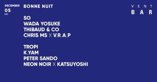 SO、Wada Yosuke、Thibaud & Co、Chris MS x V_R_A_Pが、12月05日のBONNE NUIT/VENT BARに登場!