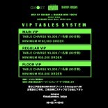 VIP TABLES:TABLE CHARGE+MINIMUM ORDER(詳細は画像をご確認下さい)