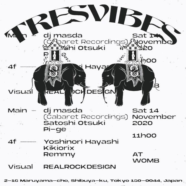 Satoshi Otsuki , PI-GE 、Kikiorix、REALROCKDESIGNからなるロングランパーティー「TRESVIBES」が3年ぶりにWOMBにカムバック。