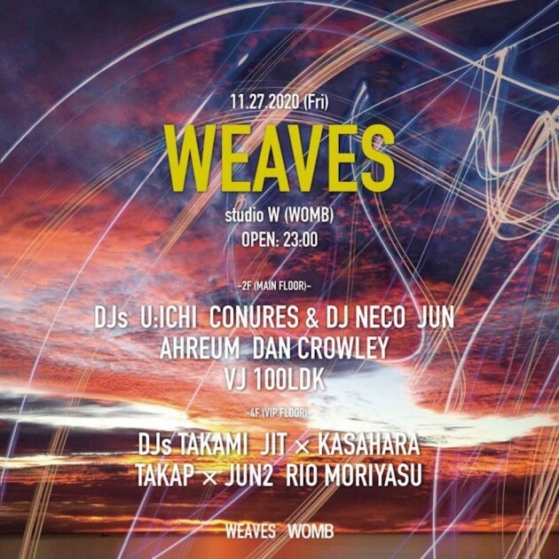 The good quality Melodic/Techno party "WEAVES" which had been held at WOMB in the past with guest artists such as DOSEM, Edu Imbernon, Paride Saraceni is coming back following the last party at bar W back in September.