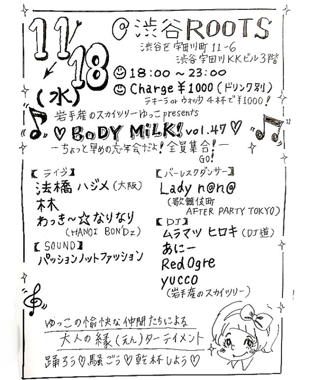 来週11/18(水)18時~23時に、渋谷ROOTS で