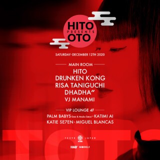 “HITO presents OTO” was launched in 2017 by HITO who is one of the Japanese women being active worldwide. They have had parties in various cities across the world such as Berlin (Watergate), Barcelona (CITY HALL) and major cities of Italy and Greece, welcoming a variety of guests from across the globe. They had their first party in Japan at WOMB back in September 2019. This time, they will present a second one. As guest artists, they will have artists who represent Japan in the world including Drunken Kong, Risa Taniguchi and DHADHA”. The 4th floor VIP LOUNGE will also have a great lineup that represents the Tokyo music scene. December 2020. Let's be positive and have fun.