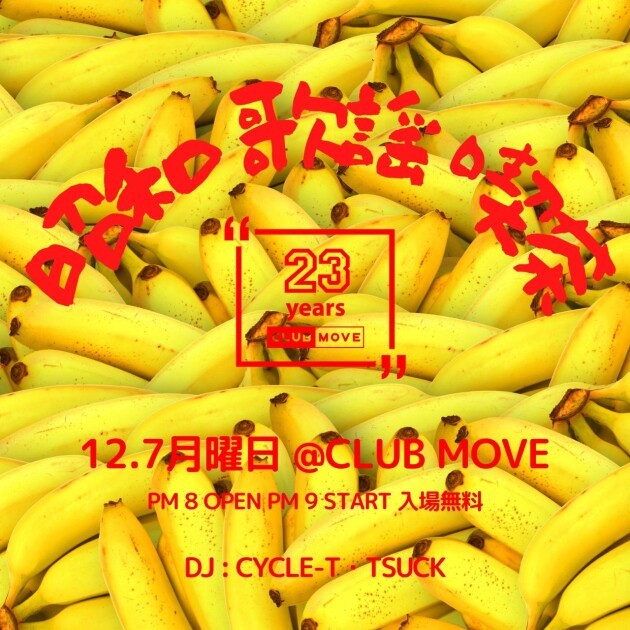 偶数月の第一月曜日に滋賀CLUB MOVEにて開催中。この日の音楽は昭和のスナックにタイムスリップ。そんな昭和歌謡にドップリと浸って頂けるクラブ・イベントが昭和歌謡喫茶です。誰もが知ってるお馴染みの曲からレアでマニアックな曲までと幅広い選曲でDJがプレイ。リクエストや音源持参も大歓迎。