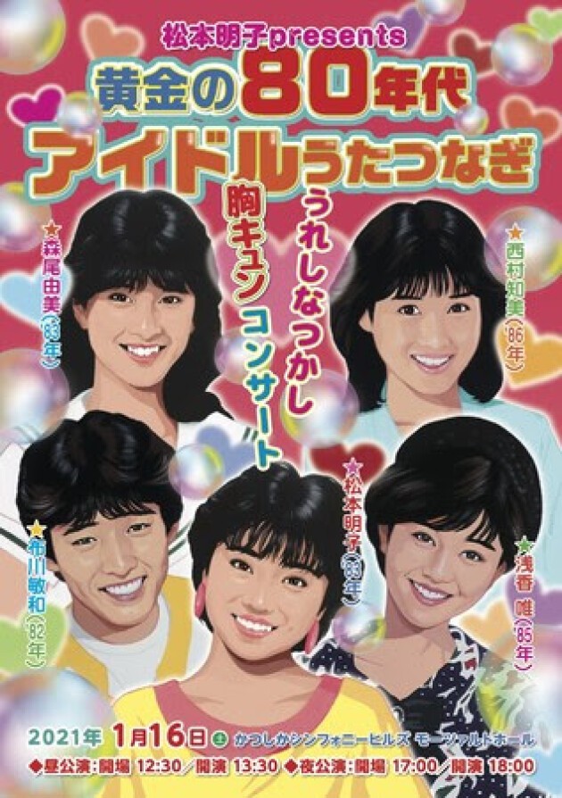 1983年にデビューした松本明子が発起人となり、同時代に活躍したアイドルたちとのスペシャルなコンサートを開催。