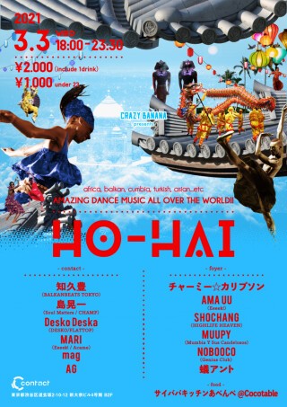 ワールドミュージックで陶酔する多幸的夜祭HO-HAI、春の節のラインナップが発表された。2フロアで展開される“熱さ”と“深さ”の濃厚な二極化を促進させる、音楽国籍を異にしたエキスパートが集結した。