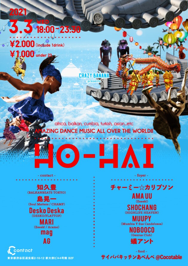 CRAZY BANANA and Contact join forces to celebrate this Spring with avant-garde and alternative sounds across 2 floors to take you far away from what we know as Shibuya.