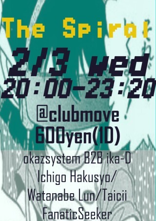 立命館テクノ部による10年以上続く老舗イベント "SPIRAL" は普段通りのテクノハウスに始まり、普段のMOVEでは聞けないアニソンやハードコアまでジャンルの垣根を超えて多くの音楽を聞いていただけるイベントです!新たなジャンルの開拓はもちろん、現役大学生との交流、クラブデビューまで非常に柔軟性の高いイベントです!
