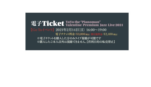 【Go Toイベント】YoYo the "Pianoman" Valentine Premium Jazz Live 2021~有料・ライブ生配信~