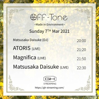 世界規模で環境音楽へ再評価とさらなる注目の勢いが止まらない現在、それに対する回答を込めて、新たな視点の環境感を持った音がセレクトされた「Off-Tone 〜Made in Environment〜」をどうぞお楽しみに。