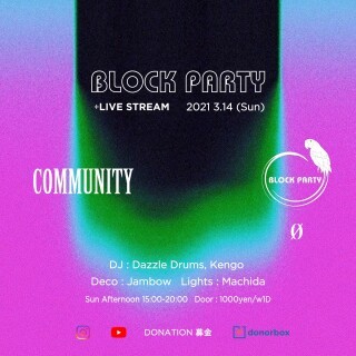 In this situation at COVID-19, this time Block Party will be broadcasting from 0 Zero again at 15:00-19:00 JST on Sunday, March 14th. The DJ Set will be live on 0 Zero YouTube and Block Party Instagram at 15:00-19:00 JST.