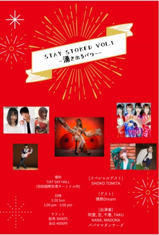 日本人女性フレアーパフォーマー第一人者富田晶子(SHOKO TOMITA)によるスペシャルパフォーマンス。台湾の伝説日本人アーティストTokyo‐Dの阿里(2021年東京五輪非公認ソング”加油”)とアラフォーアイドルユニット情熱Dreamの初配信ライブ