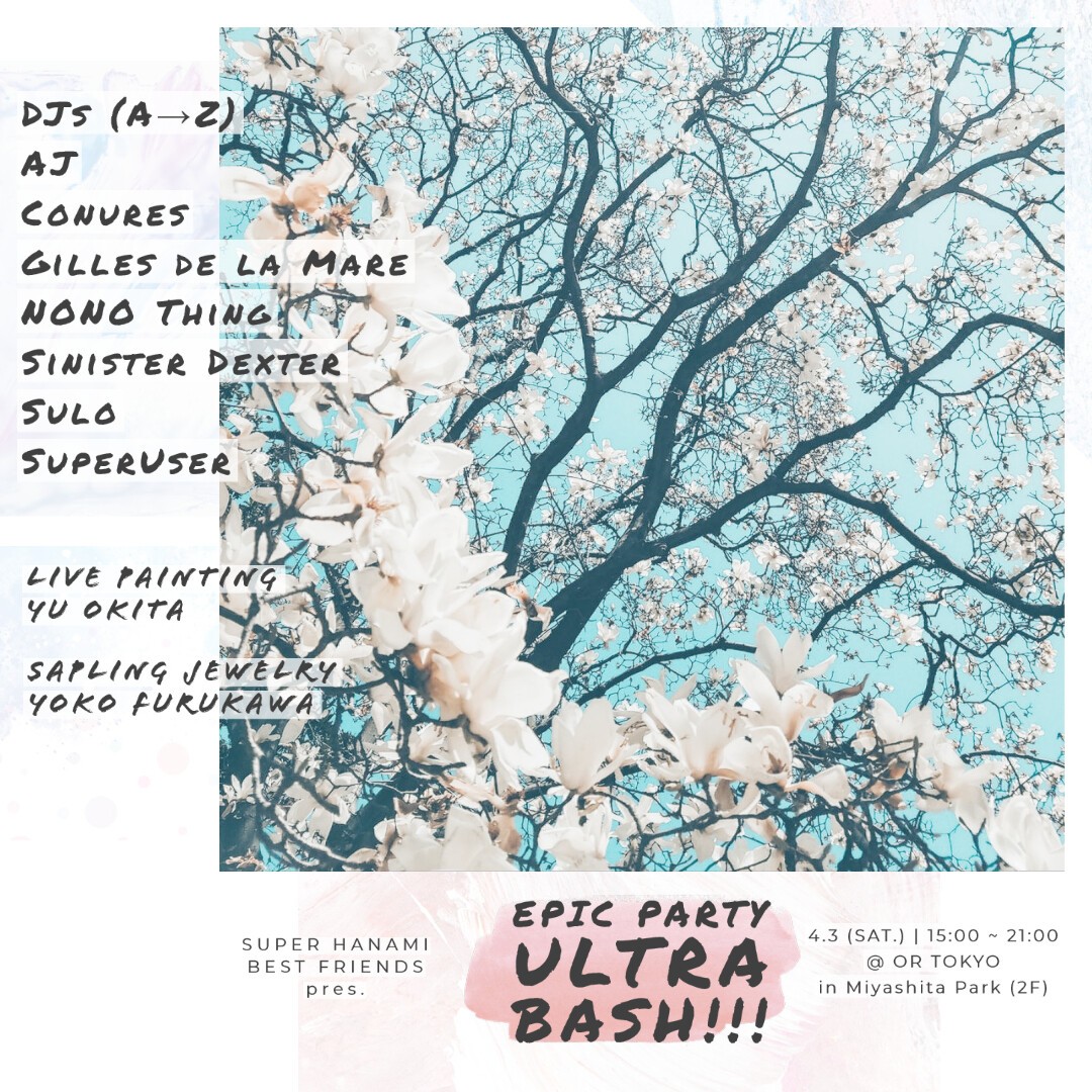 Shibuya's iconic Miyashita Park has been reborn as a modern, state-of-the-art culture hub with "OR TOKYO"—the city's newest and classiest venue—conveniently located inside! This April 3rd, get ready for a rocking dance party furnished with REAL cherry blossom branches, marking what is perhaps Tokyo's first ever indoor hanami rave! With an all-star DJ cast and an abundance of positive spring vibes, don't deny yourself the best party experience in Shibuya this day!