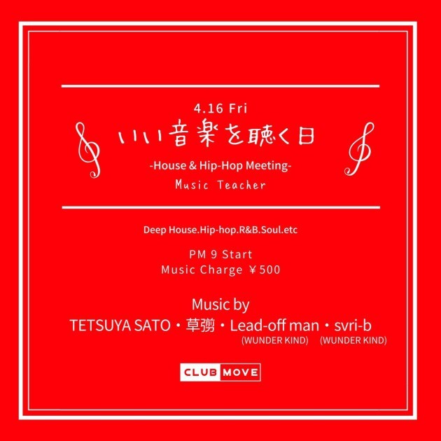 この日はMOVE界隈の様々なDJ達が週末BAR営業のBGMを担当します。