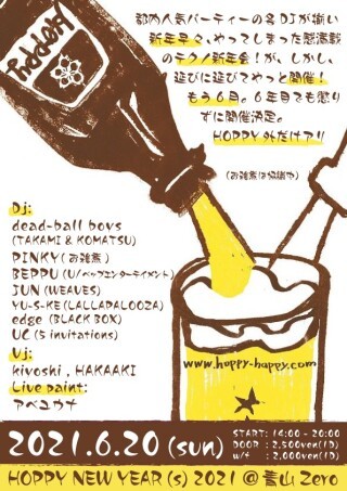 都内人気パーティーの各DJが揃い新年早々、やってしまった感満載のテクノ新年会!が、しかし、延びに延びてやっと開催!もう6月。6年目の新春も懲りずに開催決定。