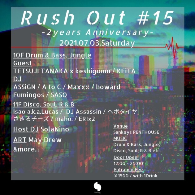 ・今回7月でRush Outは2年が経ち都内で活躍するDJ陣と