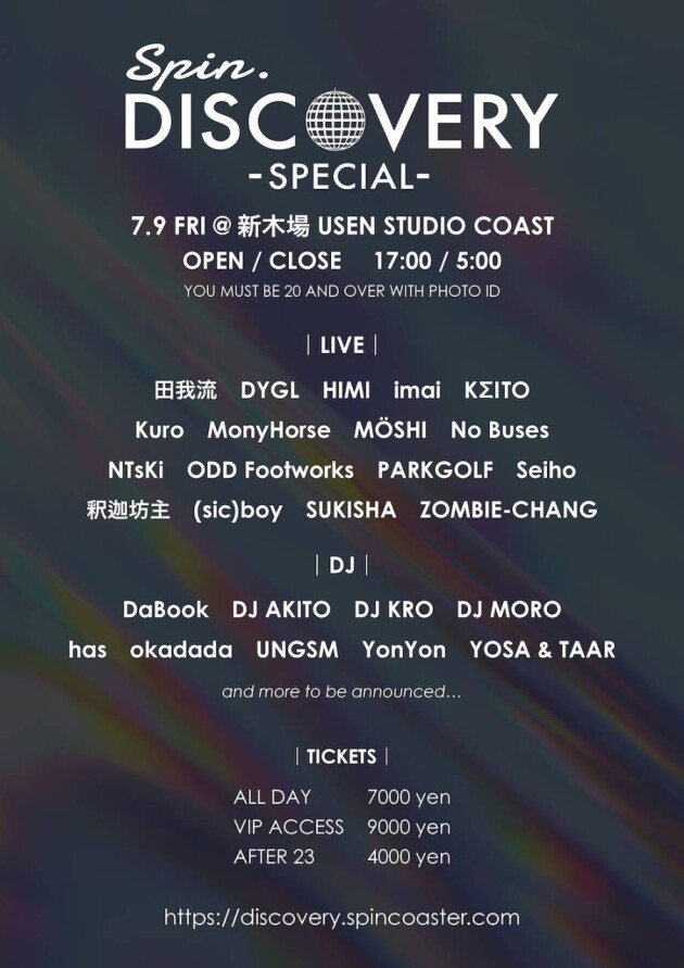 2020年にはその集大成として、これまでとは規模を画したイベントを実施予定でしたが、コロナウイルスの感染拡大に伴い開催の延期を余儀なくされました。本年はそのリベンジとして気持ちを新たにし、初となるオールナイトフェスティバル『SPIN.DISCOVERY -SPECIAL-』を新木場 USEN STUDIO COAST 協力のもとで実現させます。