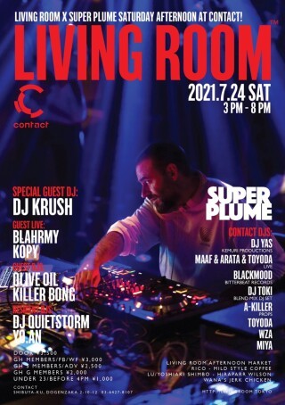 Organized by DJ Quietstorm, Nao, ドミンゴ企画 (Domingo Kikaku), and KEEE! hosts their regular party on the first Tuesday of every month, LIVING ROOM™ (https://livingroom.tokyo/).