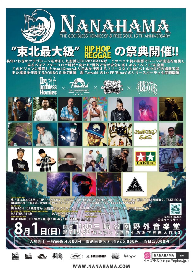 このビジョンに賛同した9sari Groupより日本を代表するフリースタイルMCバトル“KOK”の福島予選、また福島を代表するYOUNG GUNZ筆頭 樹-Tatsuki-の1st EP"Bloos"のリリースパーティも同時開催。