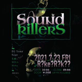 NewTechnoParty 【SoundKiller】がRake?Raka?にて開催決定! 大阪を中心に活躍するアーティスト達が最高な音楽と空間で 時間を忘れて、盛り上がれる事間違いなし‼︎ 7月23日、新しい音と空間を体感しに このスペシャルでクレイジーな一夜にお越しください