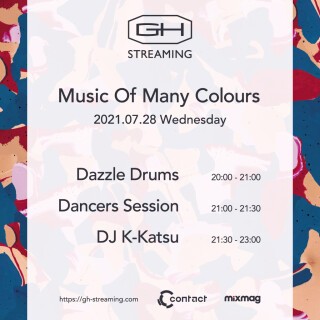 7月3日に開催されたMusic Of Many ColoursからレジデントのDazzle Drums、大阪のアンダーグラウンド・ハウス・シーンを牽引するK-Katsuのプレイと個性豊かなラインナップによるダンスセッションをGH STREAMINGで配信決定。漆黒のダンスフロアに広がった色彩豊かな空間とハウス・ミュージックを楽しんで欲しい。