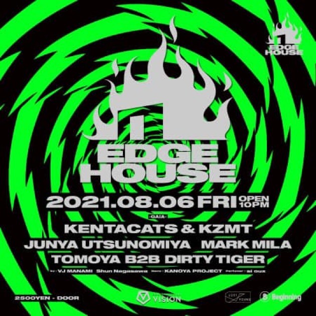 2019年2月、HOUSE / TECH HOUSEのグルーヴをいち早く取り入れ、五感を刺激する新感覚パーティをプロデュースしてきた “EDGE HOUSE”。コロナ禍の煽りを受けた長期間の自粛期間を経て2021年8月ついに再開!