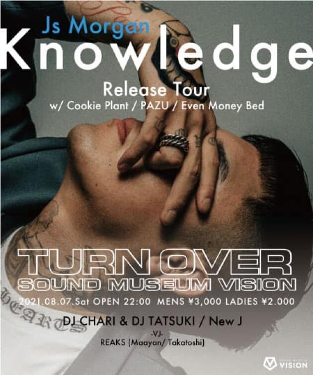 昨年9月にVISIONにて開催された「TURN OVER」 × Js Morgan 2nd EP”Fast Tour”RELEASE PARTYでは爆発的な動員を誇り、これからが期待されるJs MorganのLIVEが決定!今回は記念すべきファーストアルバム”knowledge” のリリースパーティーとなる!