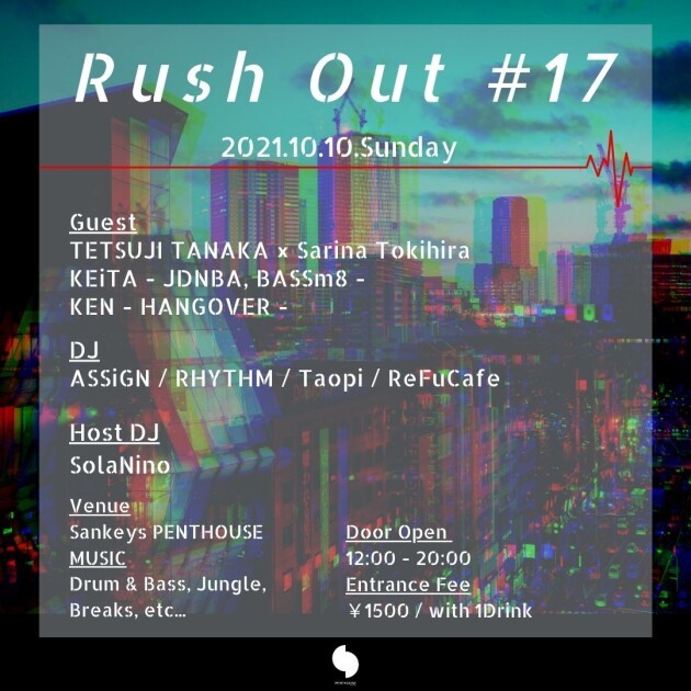 10階のフロアから望める夜景をバックに、原宿 Sankeys PENTHOUSEから発信するDrum & Bass Party。 Drum & BassのサブジャンルであるLiquid, Deep, それに関連したJungle, Breaksなど様々な音を体感できます。