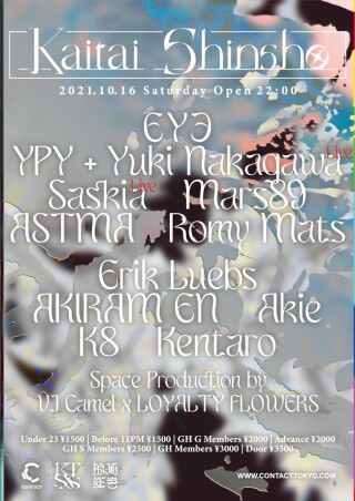Focused on cutting-edge electronic music, Romy MatsandVJ Camel's party Kaitaishinso returns to Contact after a 11 month hiatus.