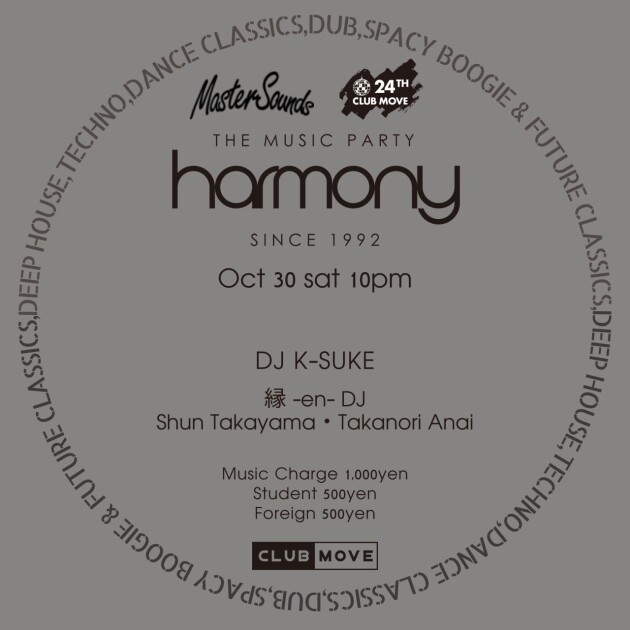 10月もクロスオーバーパーティー "縁 -en-" のメンバーがHARMONYのサポートDJとして参加してくれます。