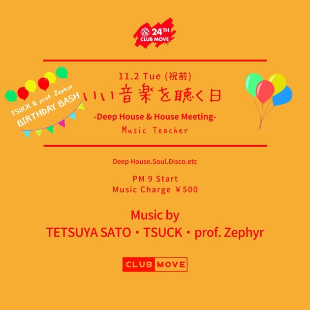 この日はMOVE界隈の様々なDJ達が週末営業のBGMを担当します。