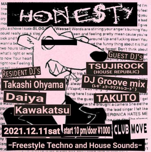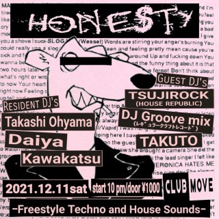 Takashi Ohyama、Daiya、Kawakatsuがプレゼントする滋賀のCLUB MUSIC DEEP NIGHT!!「HONESTY」