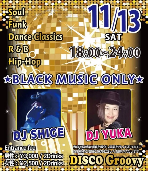 【DJ SHIGE & DJ YUKA】にておなじみ!黒音ONLYの踊れる夜をお贈りします♬