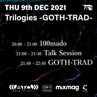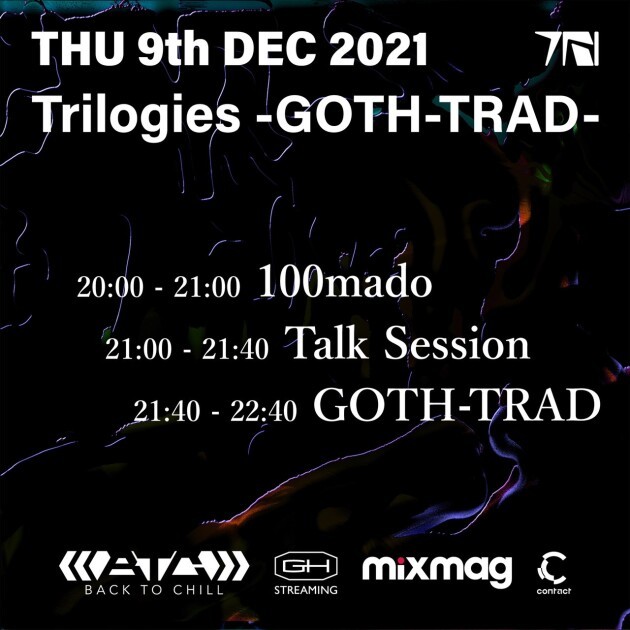 For this streaming, getting ready for “Trilogies -GOTH-TRAD-“ to start the following day, GOTH-TRAD and 100mado will be DJing along with a talk session curated by Yuki Kawasaki (Mixmag Japan).