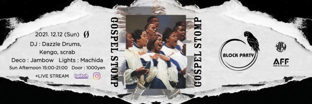 Gospel Stomp。そして新たな音と人との出会い。ダウンテンポからダンスクラシック、そして新しいグルーヴをいつものメンバーとscrabさんと一緒にBlock Party!