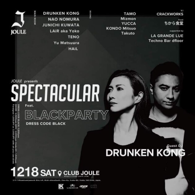 club JOULEのTECHNO PARTY "SPECTACULAR"に近年ワールドワイドに活躍するDRUNKEN KONGがゲストに登場。