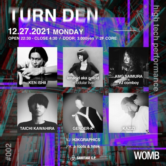 SABOTAGE C.P.が NEW UNDERGROUND をテーマに掲げたテクノパーティー TURN DEN を開催。 ヘッドライナーは日本が世界に誇るテクノゴッドKEN ISHII。