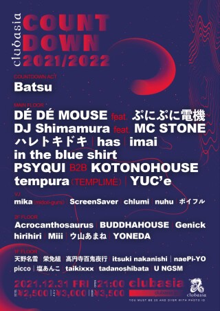 2021年も大変な年となりお客様、アーティストの皆様に助けられた1年、スタッフ一同感謝致します‼️素晴らしい2022年の幕開けを是非clubasiaで!!