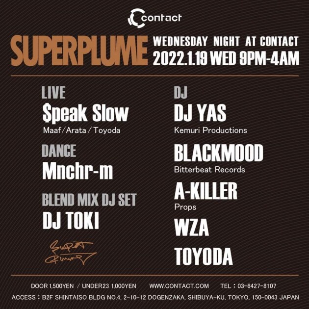 DJ YAS, BLACKMOOD, A-KILLER, TOKI, Toyoda, and a live performance by MAAF, along with dance showcases by Mnchr-m.