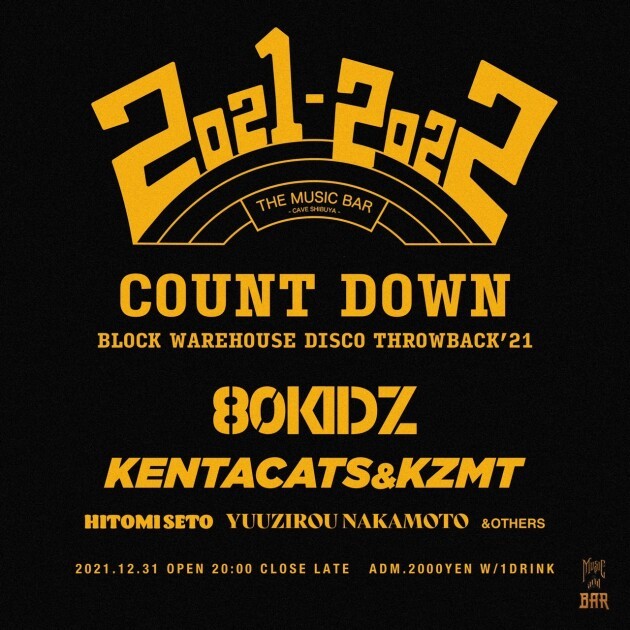 THE MUSIC BAR-CAVE SHIBUYA-初となるカウントダウンパーティー! 今年のラストを飾るのは80KIDZ、KENTACATS&KZMT。 年越しはぜひTHE MUSIC BARで。