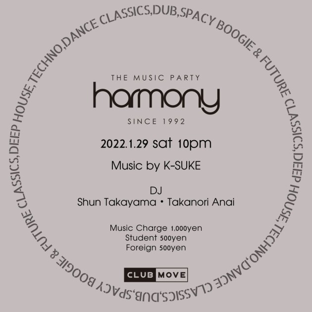 音楽を取り巻く環境の変化が著しい昨今、このHARMONYだけはいつも変わらず温かい場所であり続けたいと思います。新旧織り交ぜて、様々なジャンルをクロスオーバーさせて、刺激的なミュージックライフを今回もみなさんと楽しんでいけたら幸いです。
