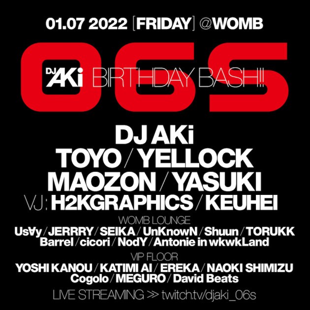 WOMB 新年一発目を飾るパーティーは 06S。昨年復活(RETURNS)をし20周年を迎え、オンラインでのライブ配信とオフラインでの圧倒的なサウンドシステムから鳴り響く怒涛の音に包まれるフロア。2つの融合によって新たなダンスミュージックの楽しみ方を進化させ、ネクストステージへと突入する。