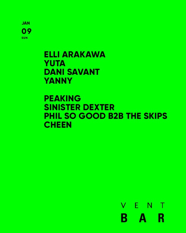 RDCや数々のフェスティバルでも活躍するELLI ARAKAWAが、1月9日のVENT BARへ登場!